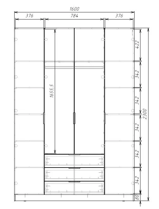 Шкаф ЭКОН распашной 4-х дверный с 3-мя ящиками