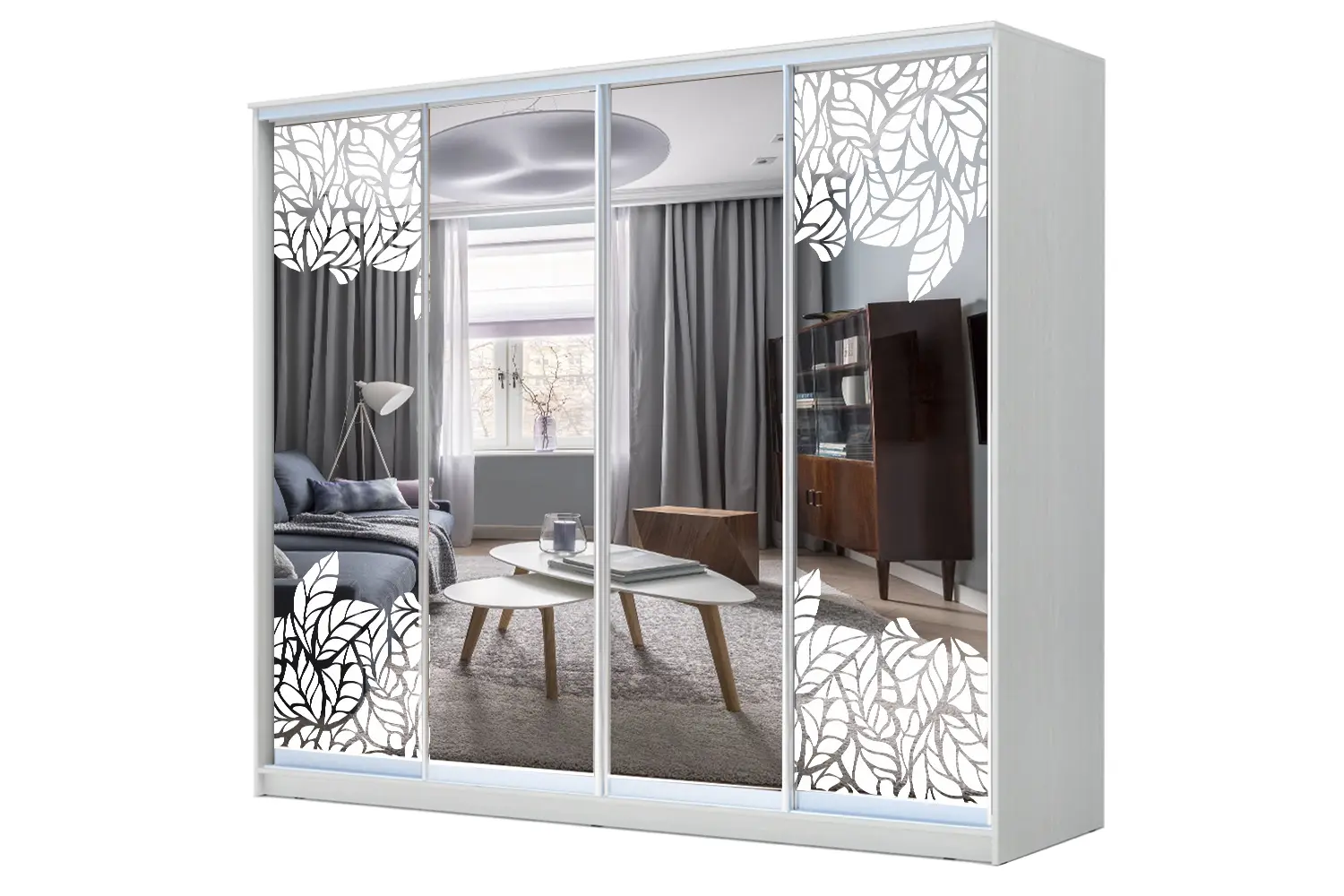Шкаф-купе 4-х дверный ХИТ с пескоструйным рисунком Лист малый на 4 фасада47 730 руб. -40%