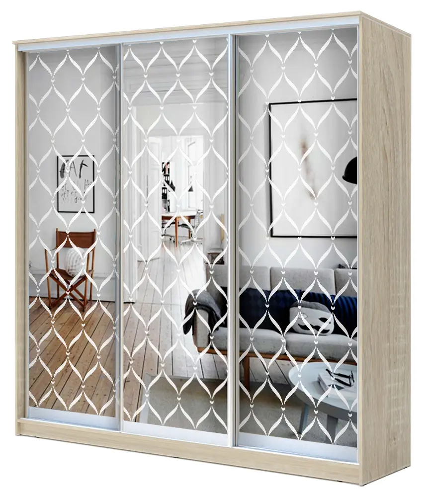 Шкаф-купе 3-х дверный ХИТ с пескоструйным рисунком Ромб большой зеркальный37 230 руб. -40%
