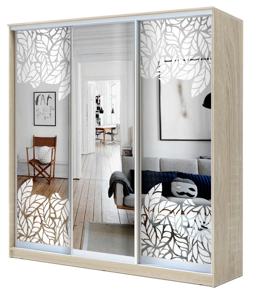 Шкаф-купе 3-х дверный ХИТ с пескоструйным рисунком Лист с зеркалом37 230 руб. -40%
