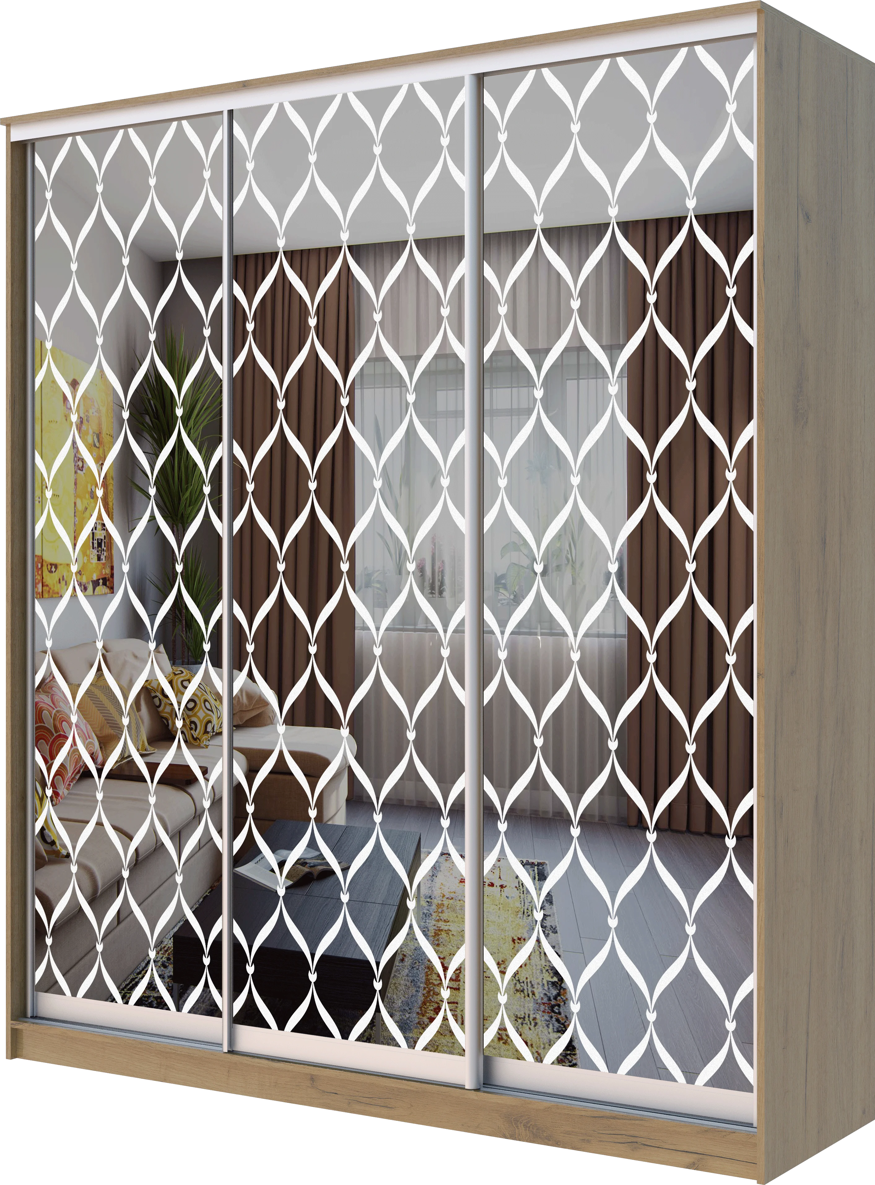 Шкаф-купе 3-х дверный ХИТ с пескоструйным рисунком Ромб большой зеркальный39 470 руб. -40%