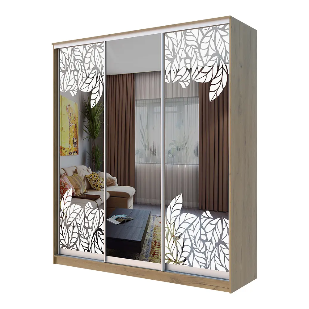 Шкаф-купе 3-х дверный ХИТ с пескоструйным рисунком Лист с зеркалом39 470 руб. -40%