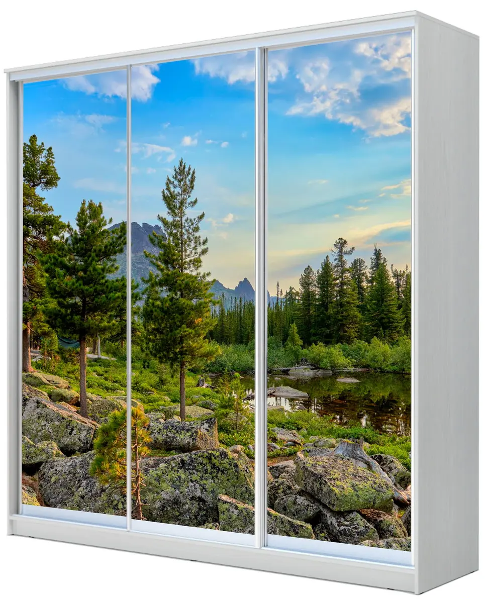 Интернет-магазин «Купи-купе» предлагает готовые корпусные шкафы-купе по ценам производителя. Купить Шкаф-купе 3-х дверный ХИТ с фотопечатью Природа без торговой наценки