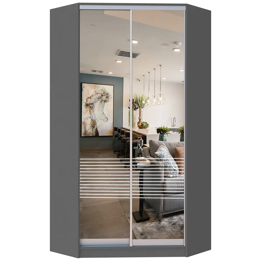 Интернет-магазин «Купи-купе» предлагает готовые корпусные шкафы-купе по ценам производителя. Купить Шкаф-купе 2-х дверный угловой ХИТ с пескоструйным рисунком Диагональные полосы №21-24 без торговой наценки