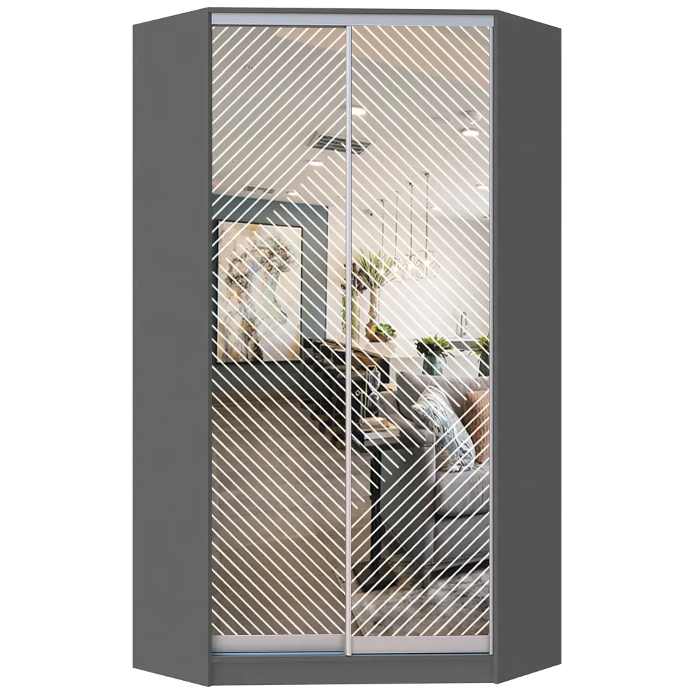 Шкаф-купе 2-х дверный угловой ХИТ с пескоструйным рисунком Диагональные полосы №22-23
