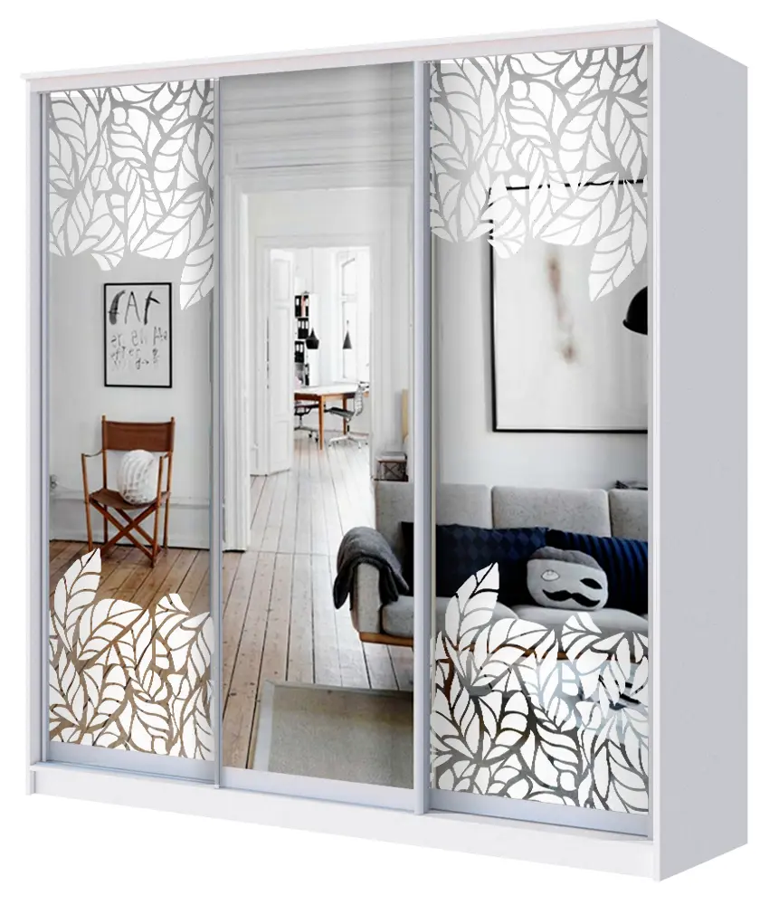Шкаф-купе 3-х дверный ХИТ с пескоструйным рисунком Лист малый с зеркалом38 470 руб. -40%