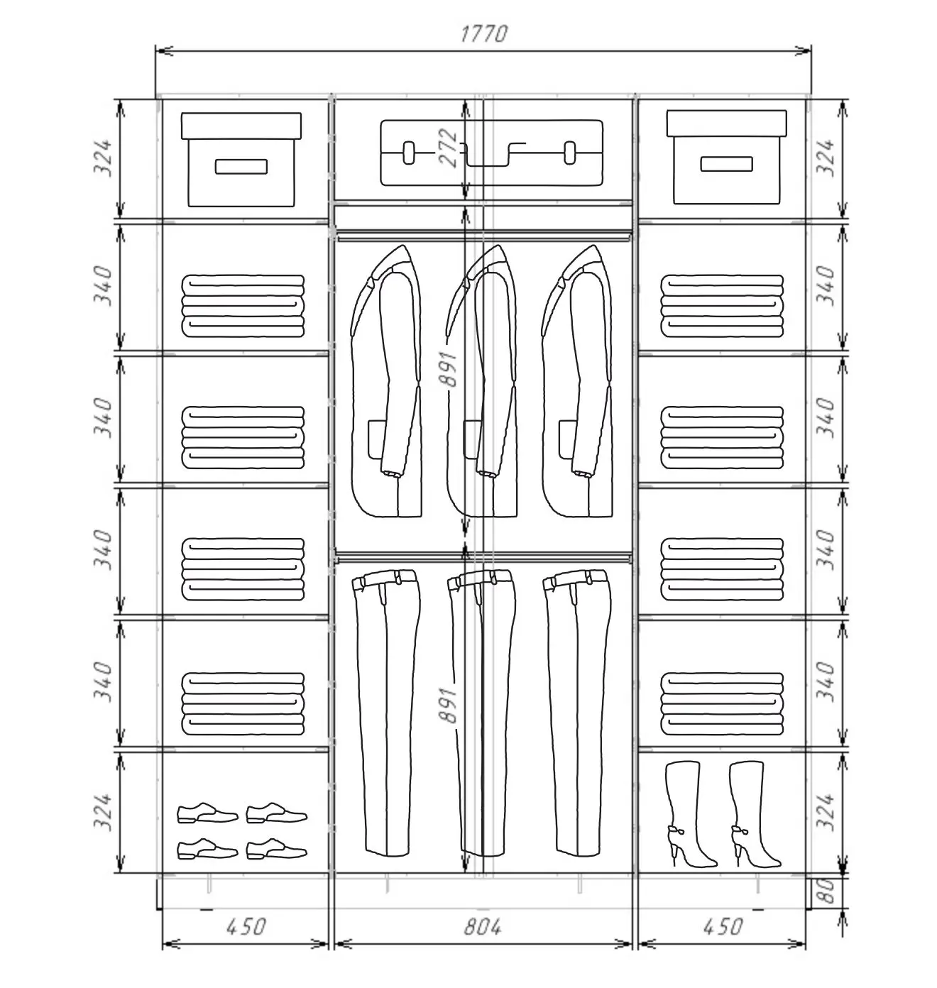 ШАГ 1. Выберите ширину шкафа и количество дверей