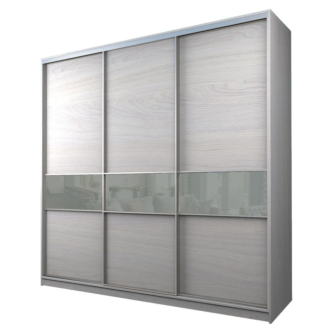 Интернет-магазин «Купи-купе» предлагает готовые корпусные шкафы-купе по ценам производителя. Купить Шкаф-купе 3-х дверный МАКС со вставками с светло-серой пленкой Oracal без торговой наценки