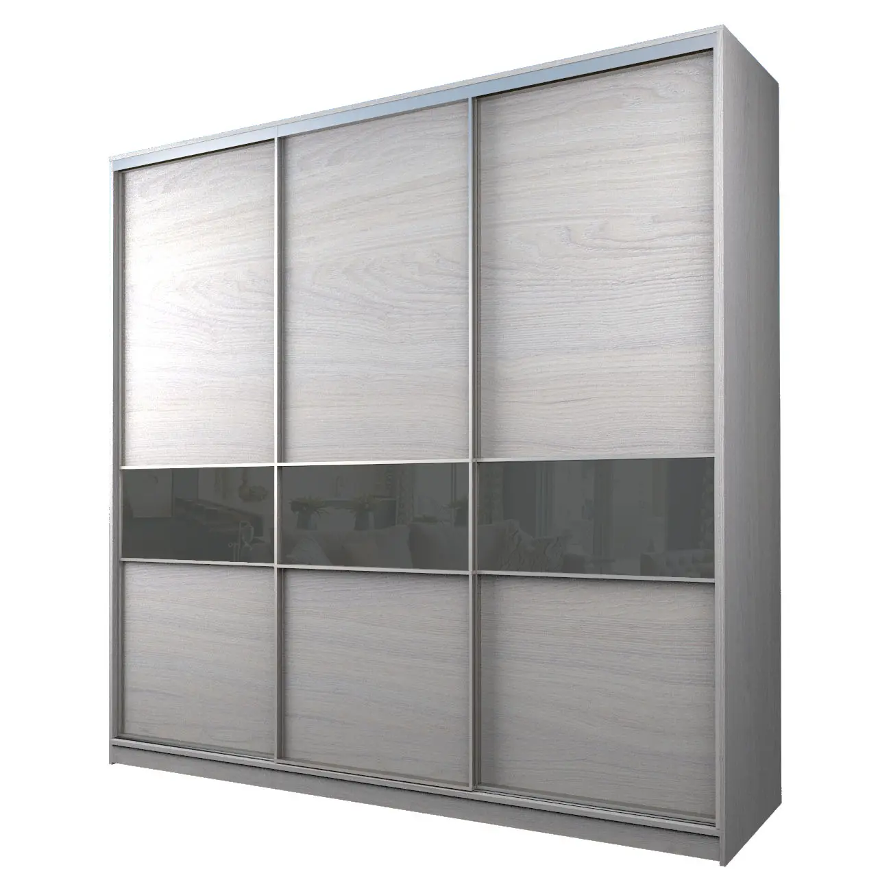 Интернет-магазин «Купи-купе» предлагает готовые корпусные шкафы-купе по ценам производителя. Купить Шкаф-купе 3-х дверный МАКС со вставками с темно-серой пленкой Oracal без торговой наценки