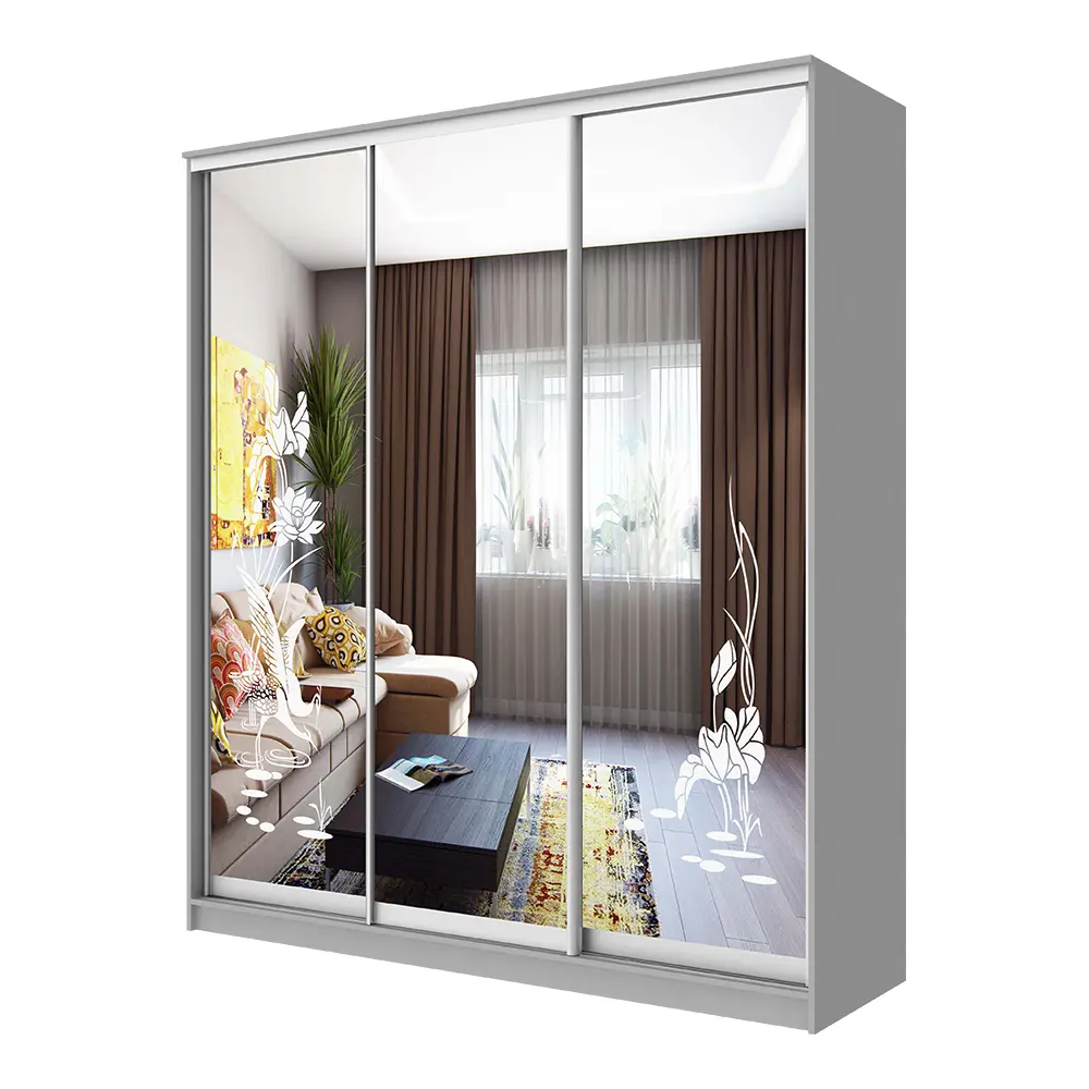 Шкаф-купе 3-х дверный ХИТ с пескоструйным рисунком Цапли