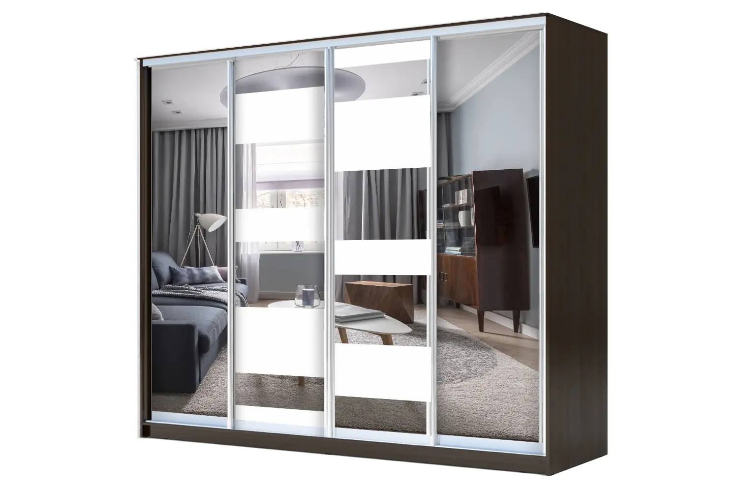 Интернет-магазин «Купи-купе» предлагает готовые корпусные шкафы-купе по ценам производителя. Купить Шкаф-купе 4-х дверный ХИТ с пескоструйным рисунком Полосы без торговой наценки