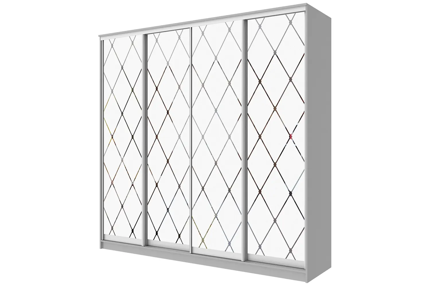 Шкаф-купе 4-х дверный ХИТ с пескоструйным рисунком Ромбы большие матовые