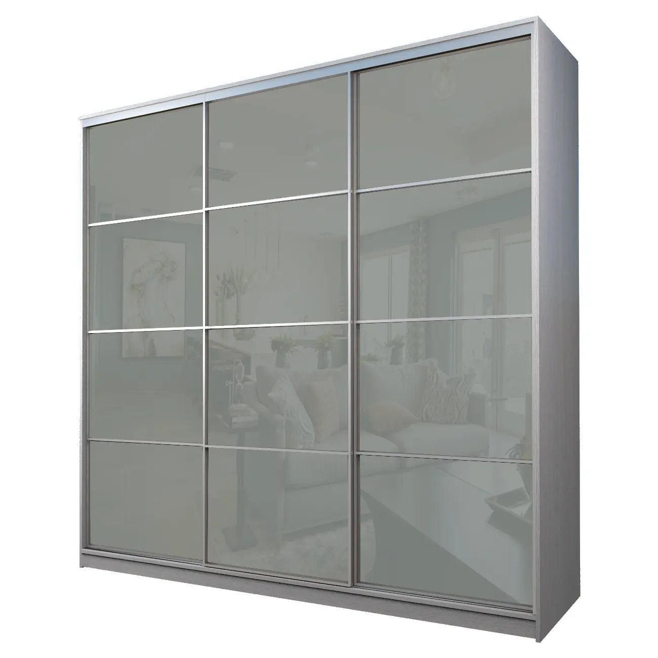 Интернет-магазин «Купи-купе» предлагает готовые корпусные шкафы-купе по ценам производителя. Купить Шкаф-купе 3-х дверный МАКС с светло-серой пленкой Oracal без торговой наценки