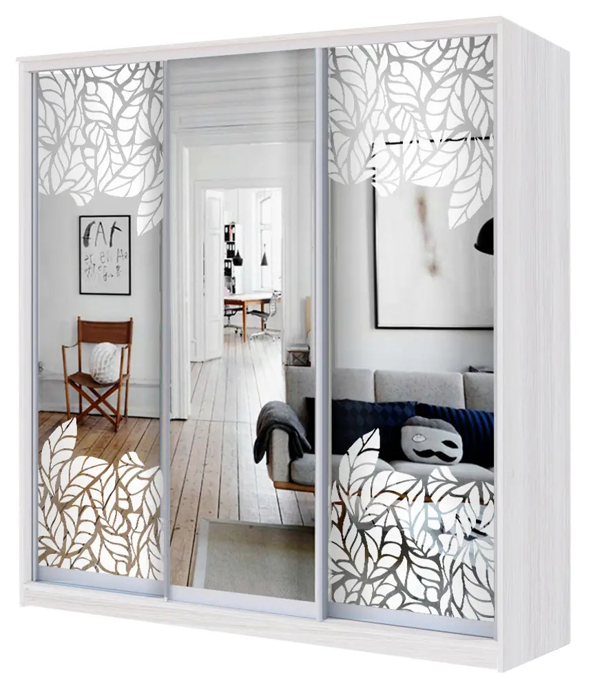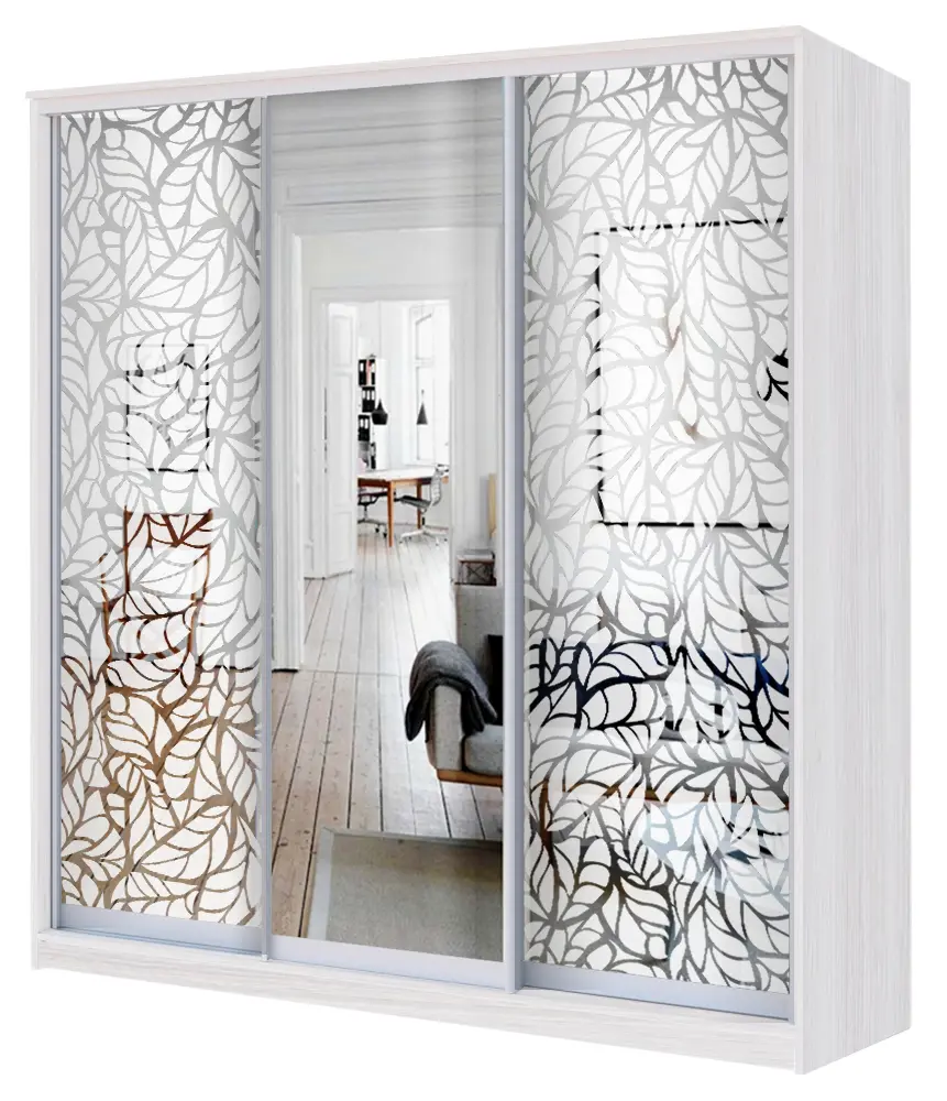 Шкаф-купе 3-х дверный ХИТ с пескоструйным рисунком Лист с зеркалом39 470 руб. -40%