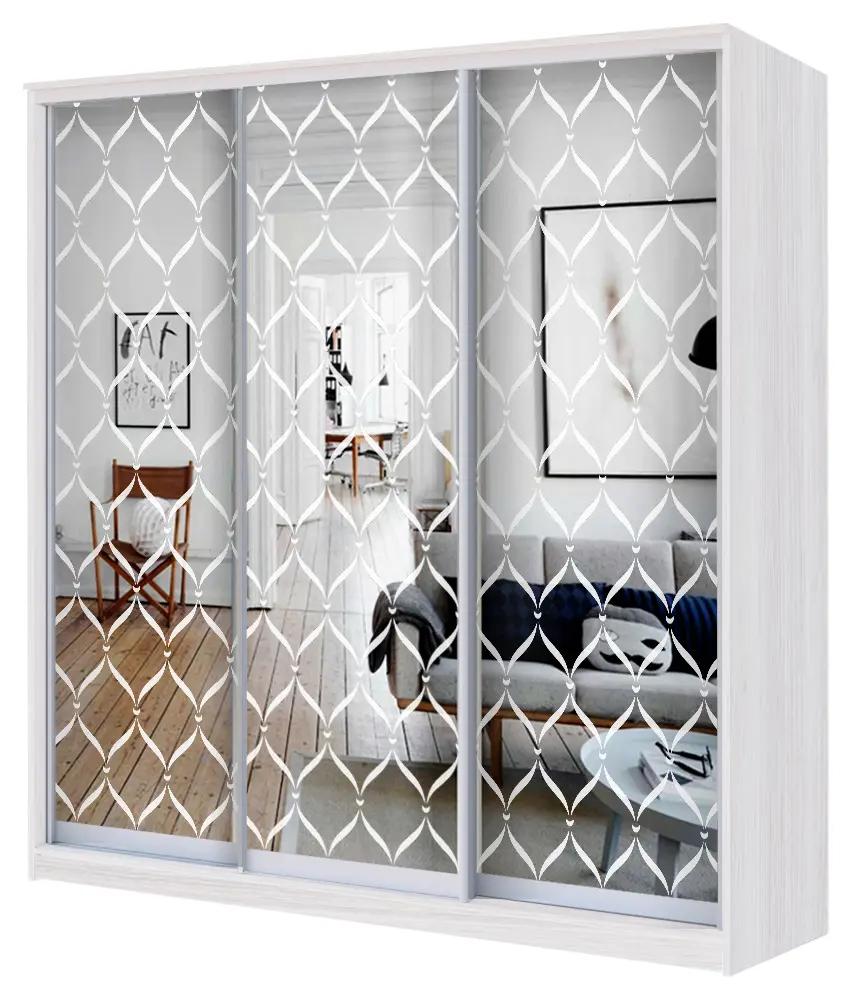 Шкаф-купе 3-х дверный ХИТ с пескоструйным рисунком Ромб большой зеркальный39 470 руб. -40%