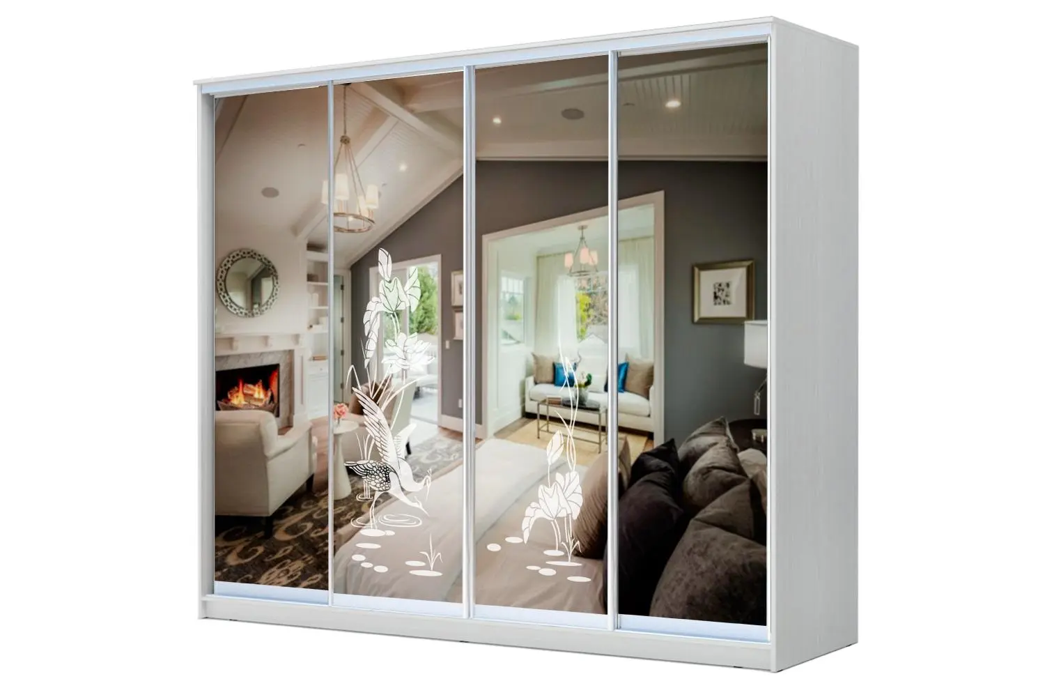 Шкаф-купе 4-х дверный ХИТ с пескоструйным рисунком на зеркале Цапли54 170 руб. -40%