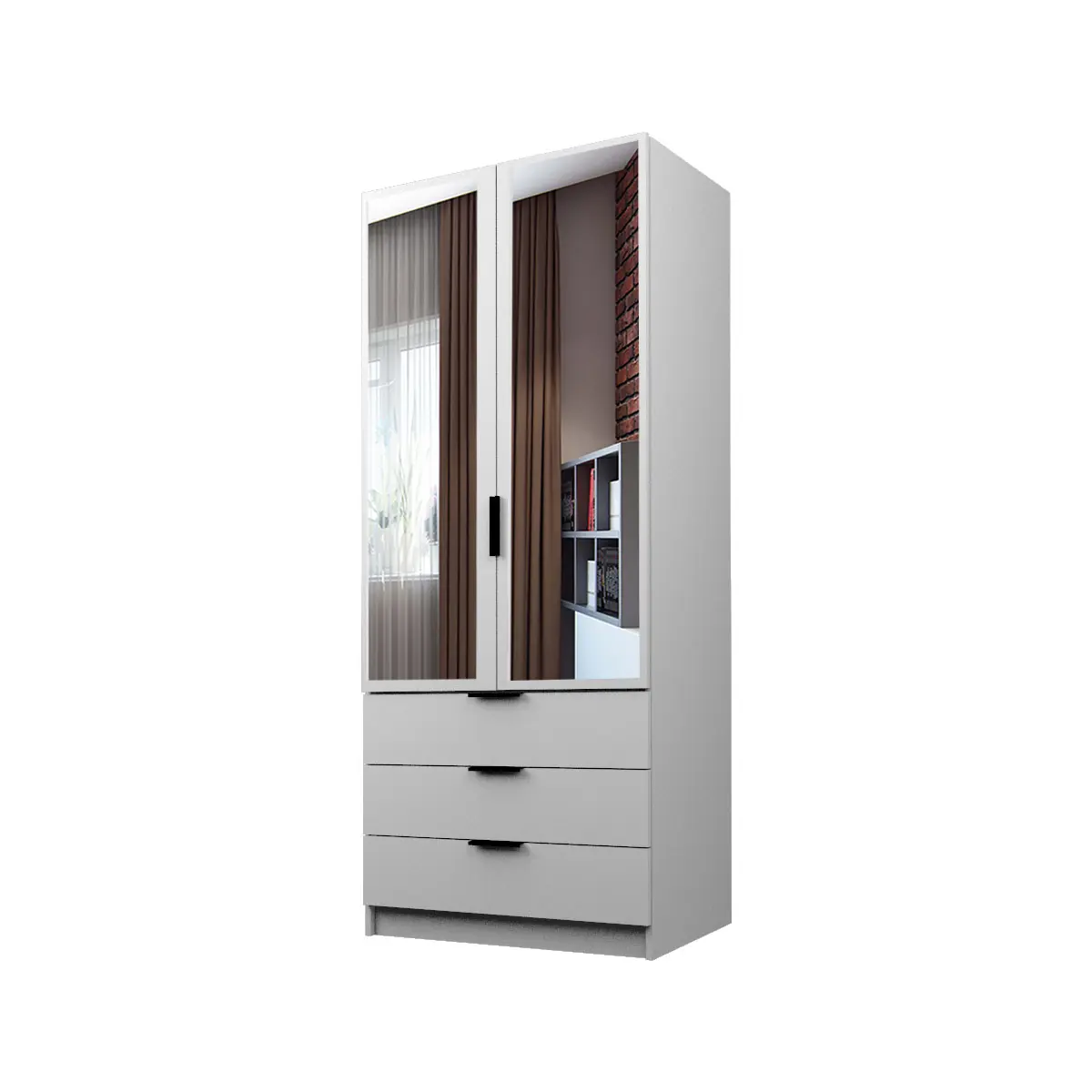 Шкаф ЭКОН распашной 2-х дверный с 3-мя ящиками с полками и штангой с 2-мя зеркалами16 040 руб. -45%