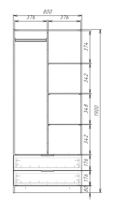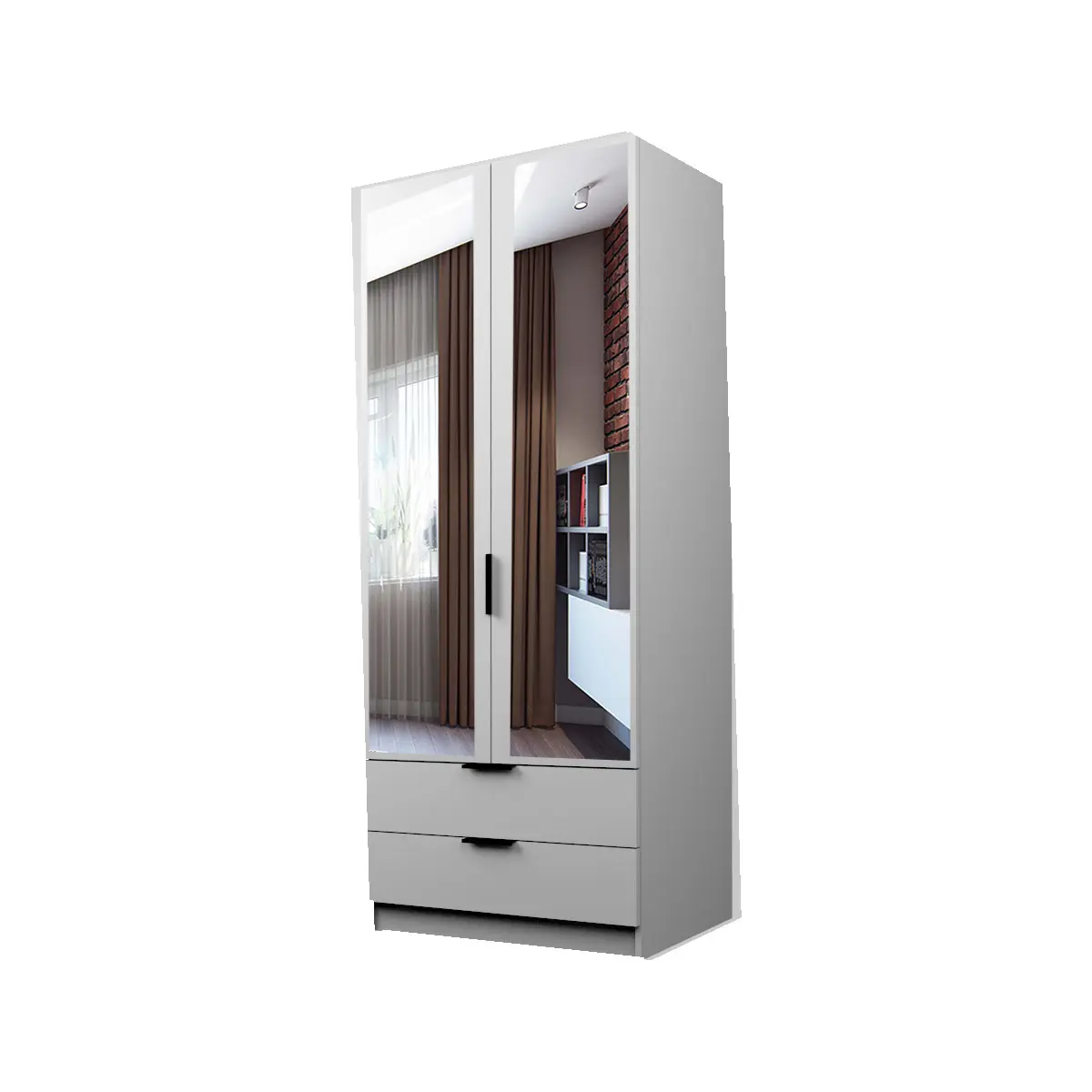 Шкаф ЭКОН распашной 2-х дверный с 2-мя ящиками с полками и штангой с 2-мя зеркалами15 640 руб. -45%