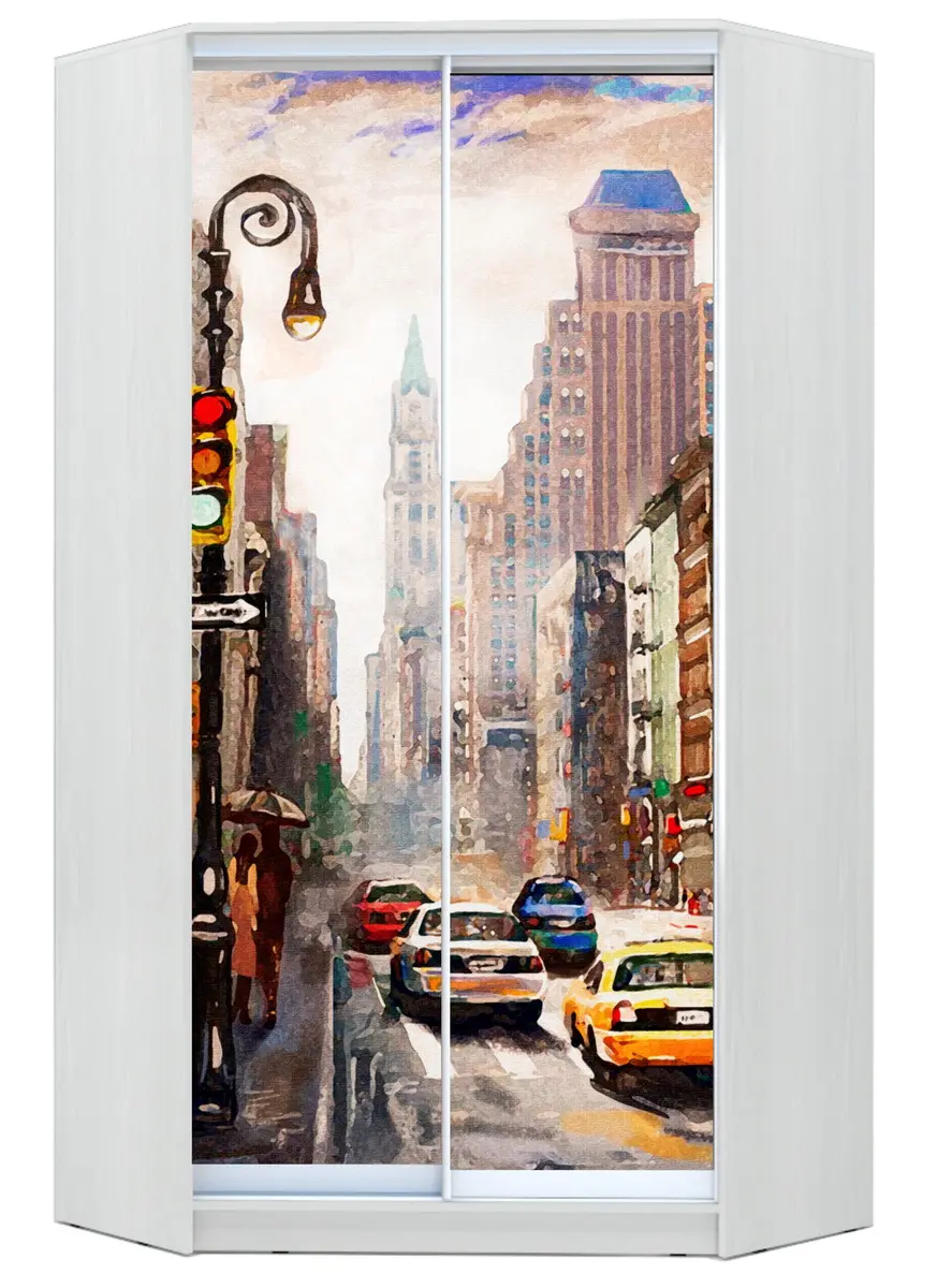 Шкаф-купе 2-х дверный угловой ХИТ с фотопечатью Городской пейзаж