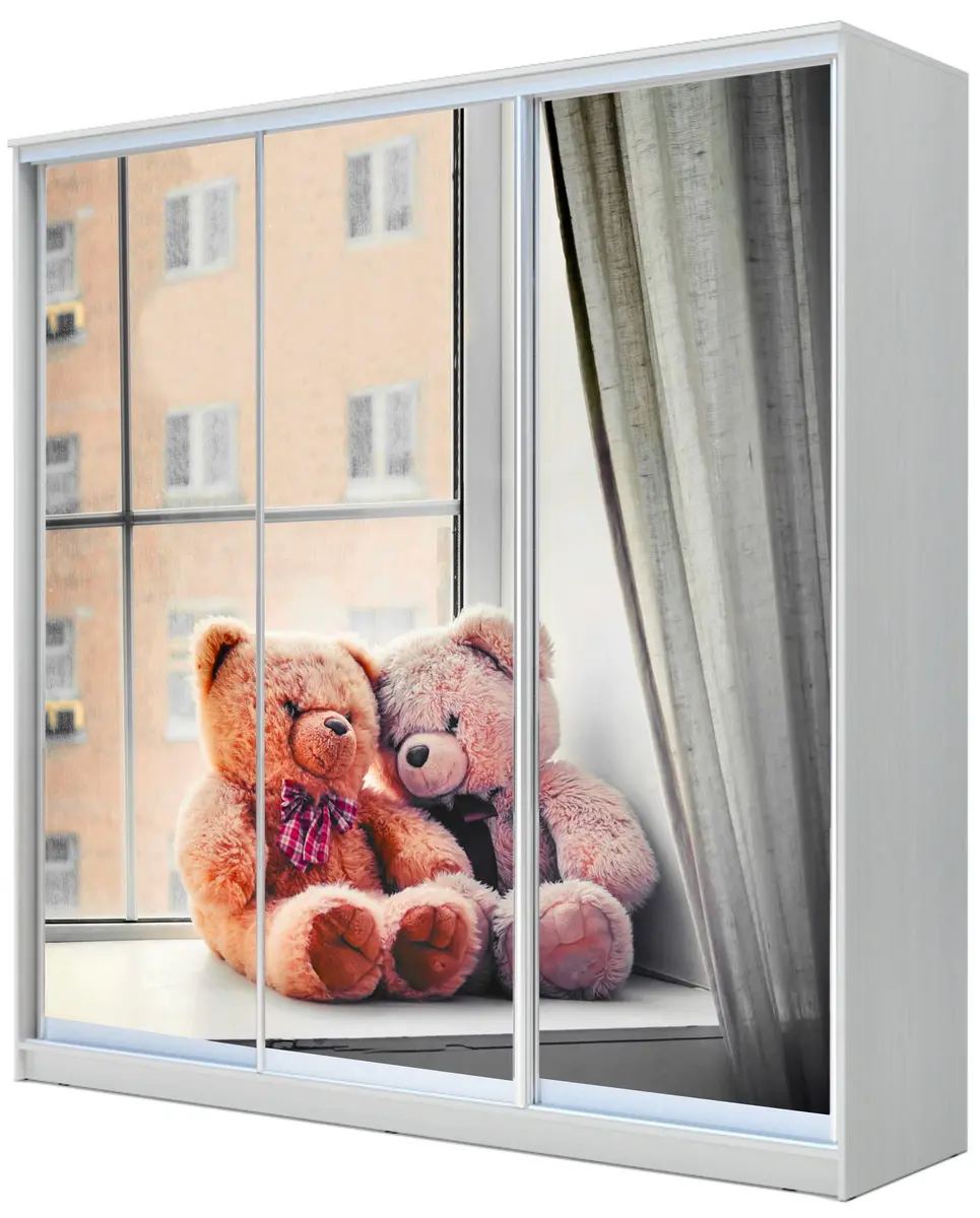 Шкаф-купе 3-х дверный ХИТ с фотопечатью Мишки на окне