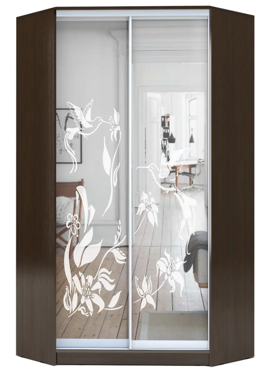 Шкаф-купе 2-х дверный угловой ХИТ с пескоструйным рисунком Колибри31 470 руб. -40%