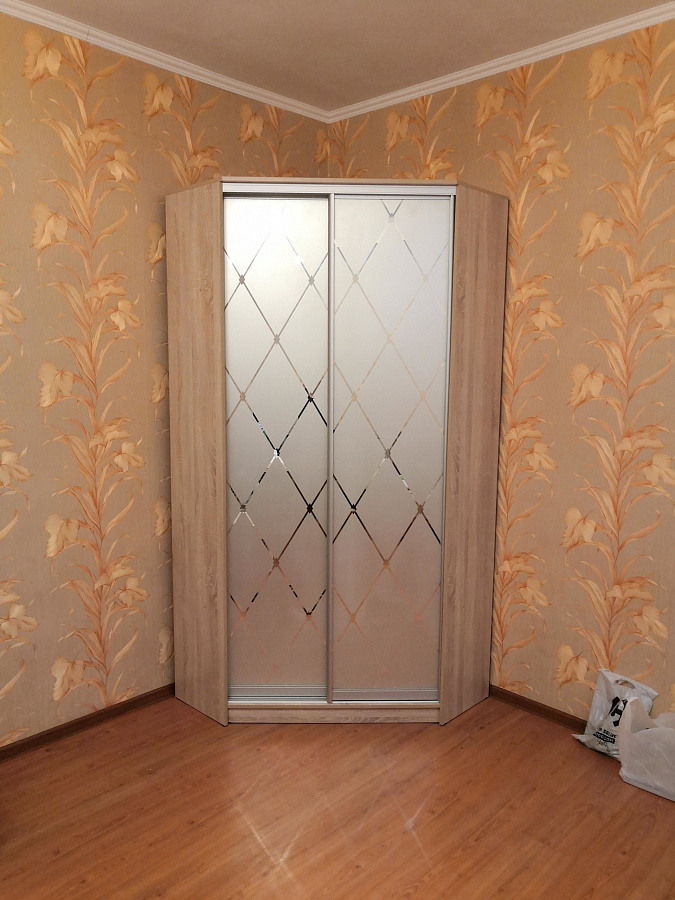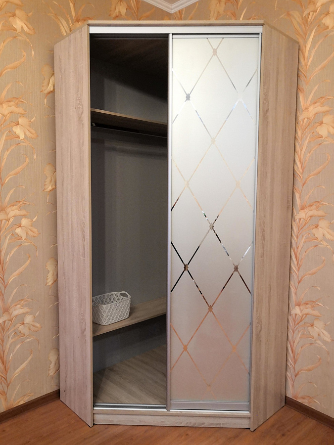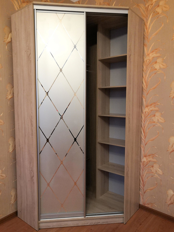 Шкаф-купе угловой ХИТ с пескоструйным рисунком Ромб большой матовый