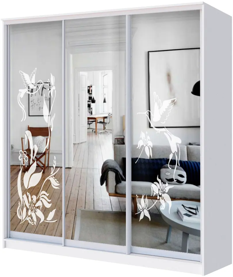 Шкаф-купе 3-х дверный ХИТ с пескоструйным рисунком Колибри30 300 руб. -40%
